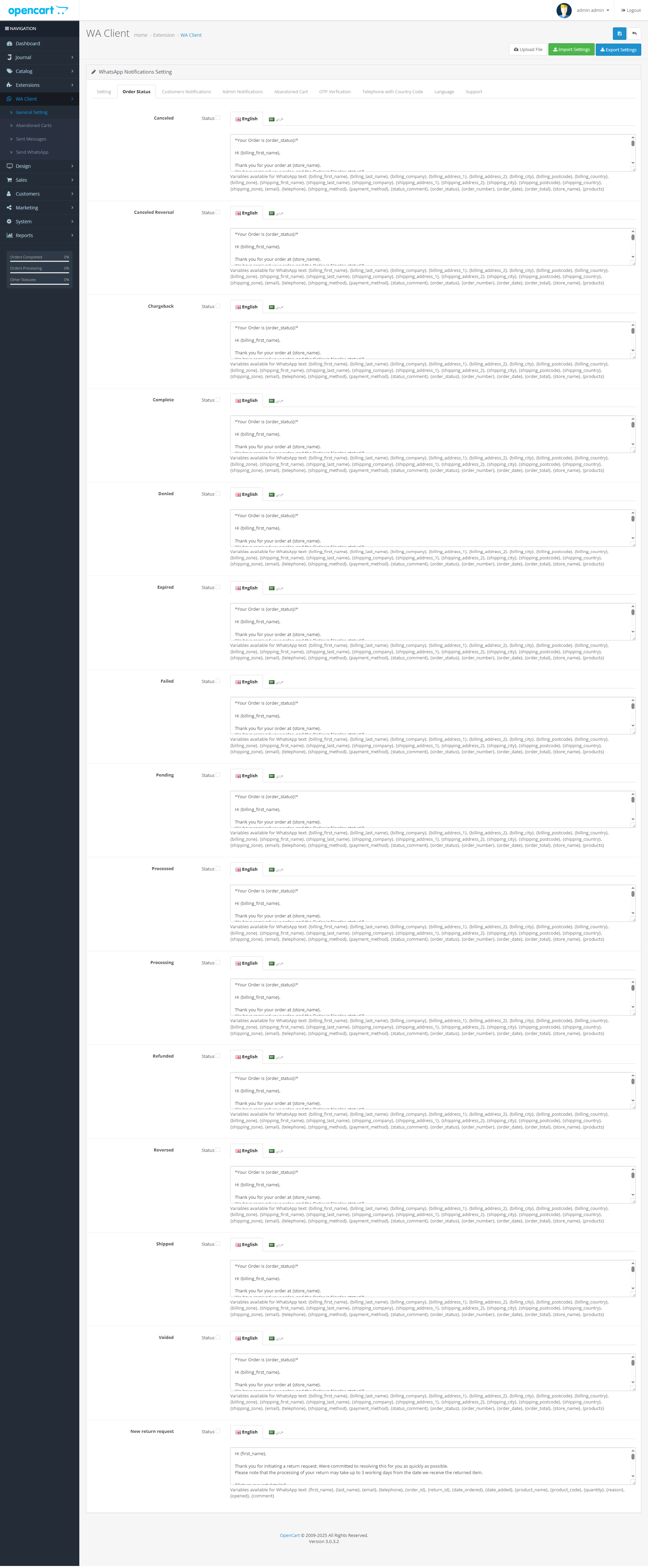 Edit message content to match your brand tone and style. Easily manage templates for different events directly from your OpenCart dashboard.